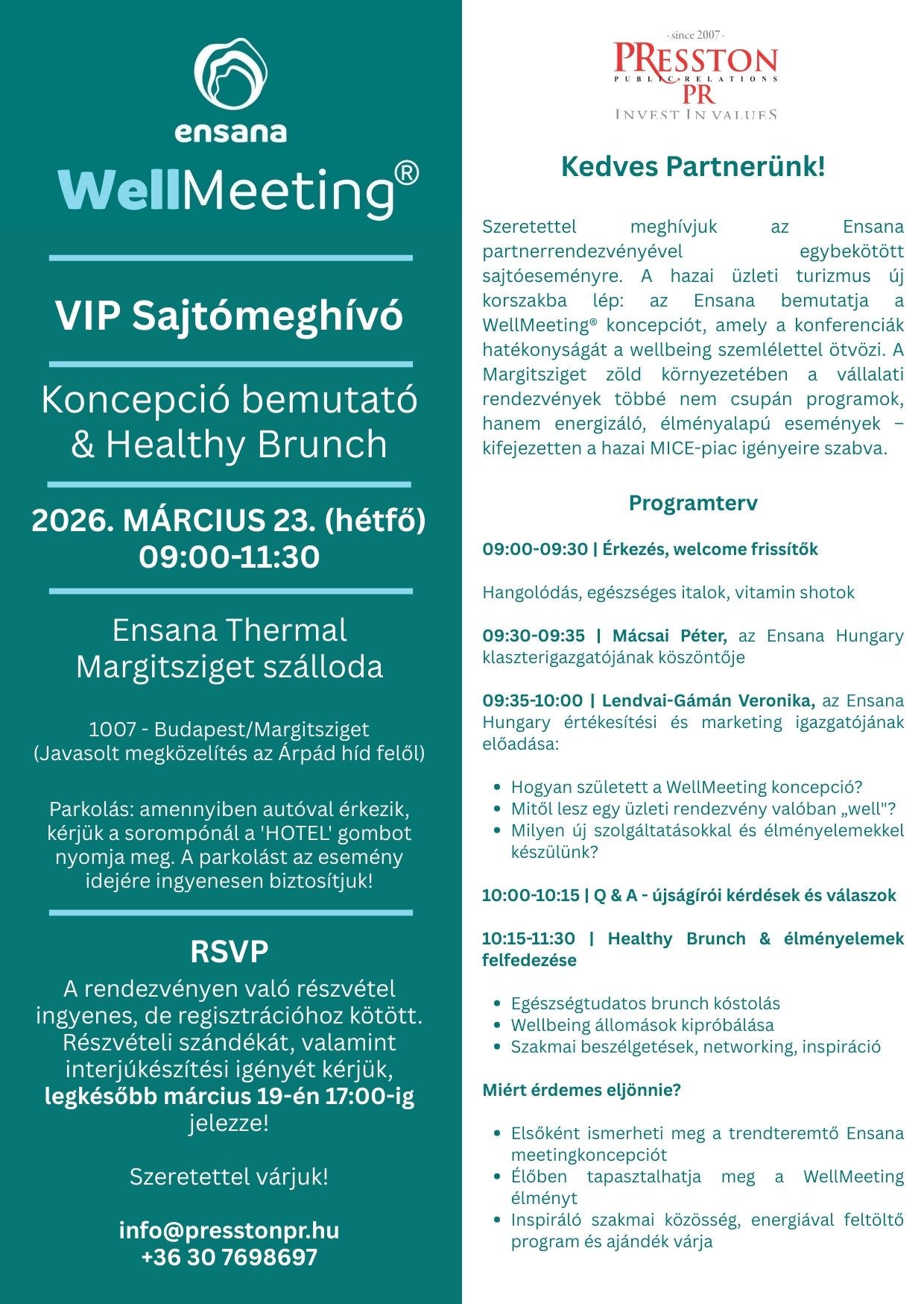 - Az Ensana WellMeeting® koncepciójának bemutatása - VIP Sajtómeghívó 2026.03.23.
